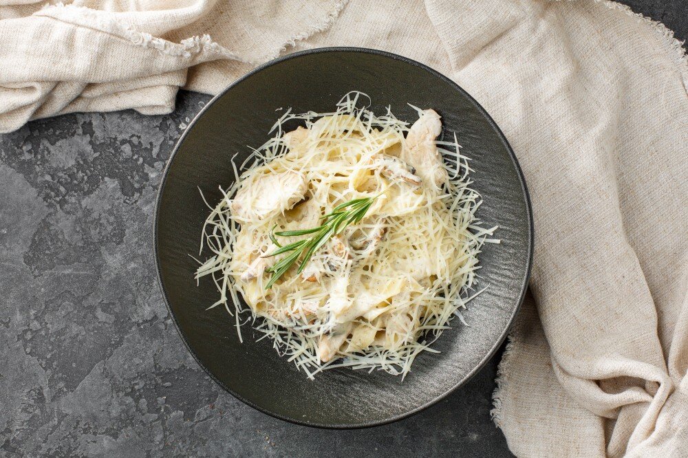 Фетучини, куриное филе, шампиньоны, сливки, сыр