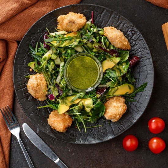 Салат зеленый с сёмгой фри
