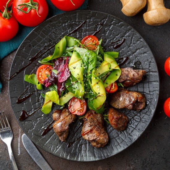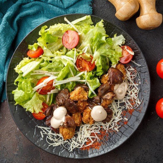 Салат с куриной печенью