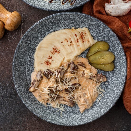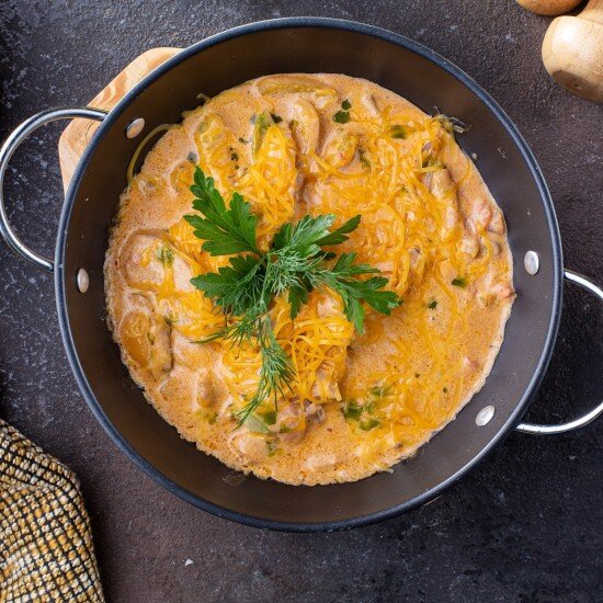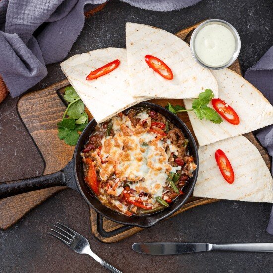 Мясо в мексиканском стиле запеченное под сырной шапочкой