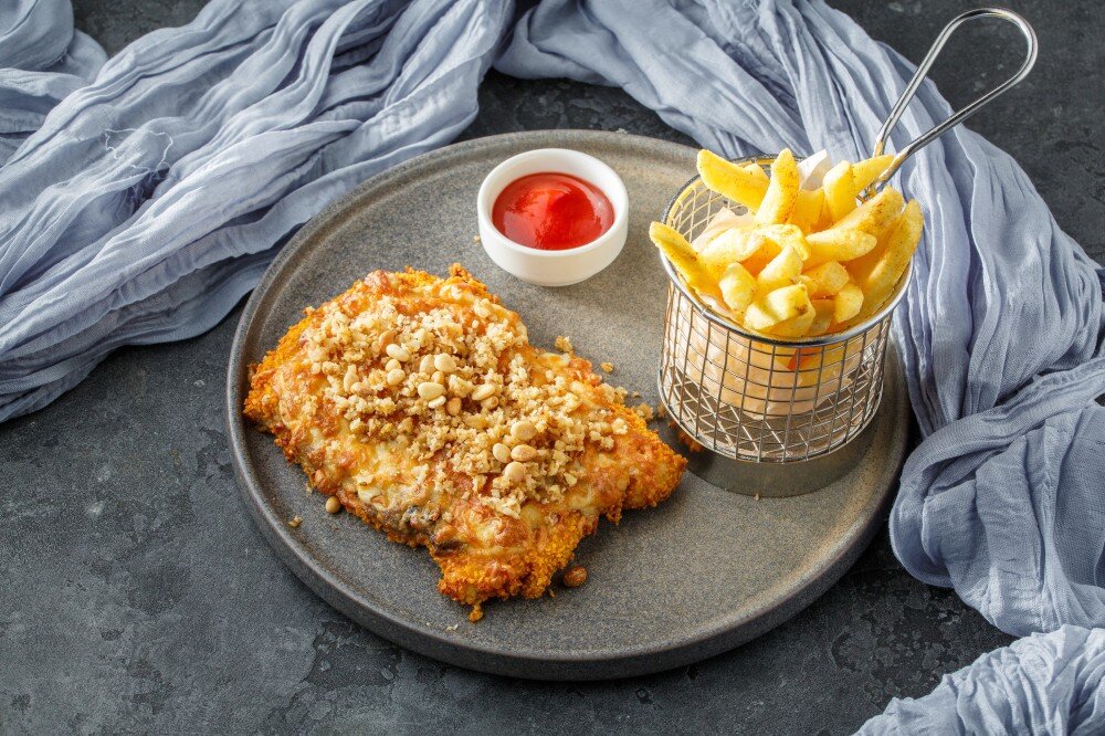 Окунь морской запеченный с пастой орзо и тайским сосом